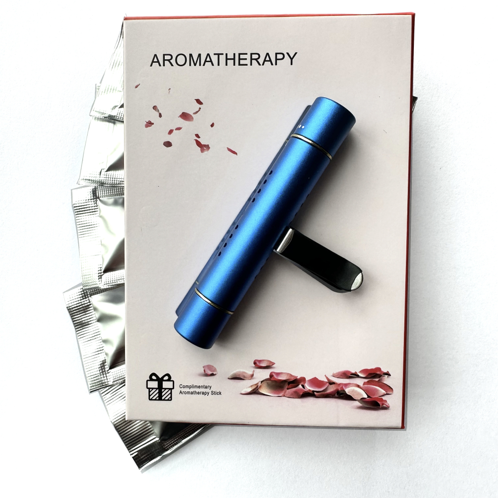 Синий диффузор поставляется в комплекте с пятью ароматическими стиками, созданными на основе натуральных ингредиентов. Один стик сохраняет аромат в течение нескольких недель. Вы также можете заказать дополнительные сменные стики, чтобы всегда поддерживать свежесть в салоне. Ароматы в комплекте: лаванда, лимон, океан, апельсин, османтус.